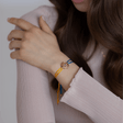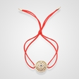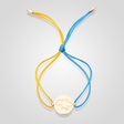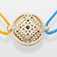 Матеріали: жовте золото 585 проби, сапфір синій, діамант. Розмір браслета: універсальний, регульований. Колір шовкової нитки на вибір: жовто-блакитна, червона. Довжина ланцюжка для підвіски: 45 (см).